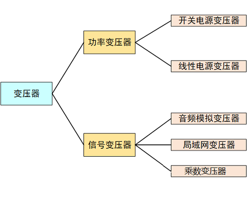 按用途分类:有电力变压器,专用电源变压器,调压变压器,测量变压器(电压互感器、电流互感器),小型电源变压器(用于小功率设备),安全变压器。
